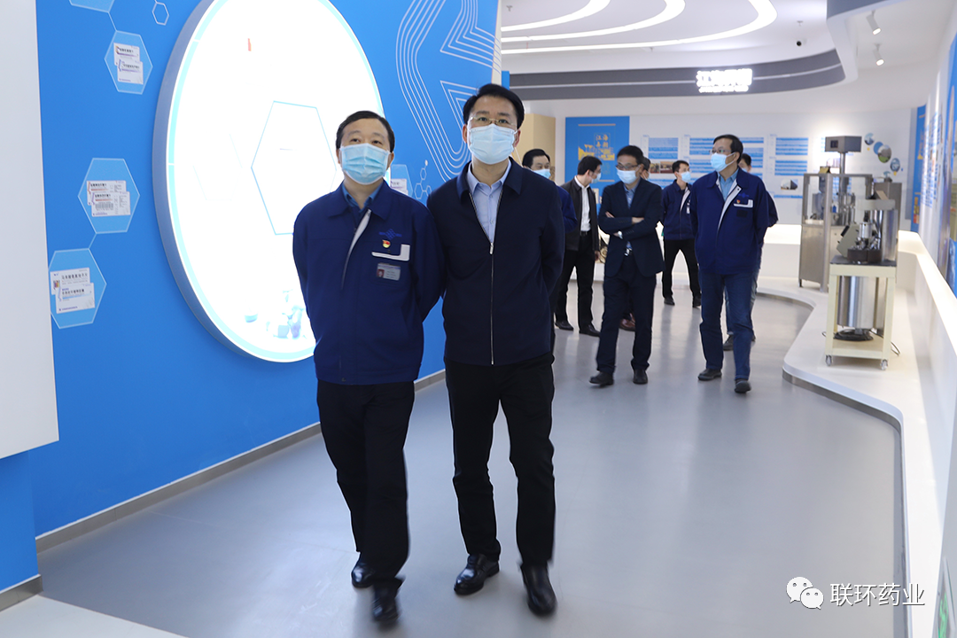 張新鋼一行首先檢查了公司的疫情防控情況,接著參觀了公司的企業文化展示中心,聽取了夏春來關于聯環藥業近年來的發展匯報,著重了解了今年一季度公司的業績情況以及2022年的發展目標,他對聯環藥業在疫情防控和生產經營方面做出的努力表示肯定。